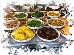 Difficile de faire plus local comme lieu de restauration. Il s'agit d'un buffet végétarien où vous paierez au poids : légumes, riz, fausse viande...